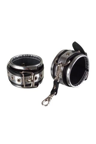 Серебристо-чёрные кожаные наручники