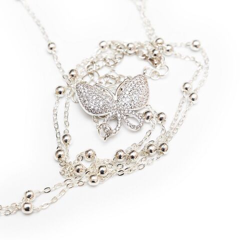 Металлическая бабочка из мерцающих кристаллов. Тонкая цепочка цвета серебра, опоясывающая женскую фигурку. Колье на все тело. Потрясающе красиво смотрится. Украшение, которое можно надеть единственным. Для ночи любви.