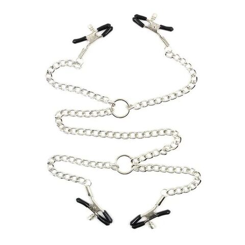 Серебристые зажимы для сосков и половых губ на тонкой цепочке