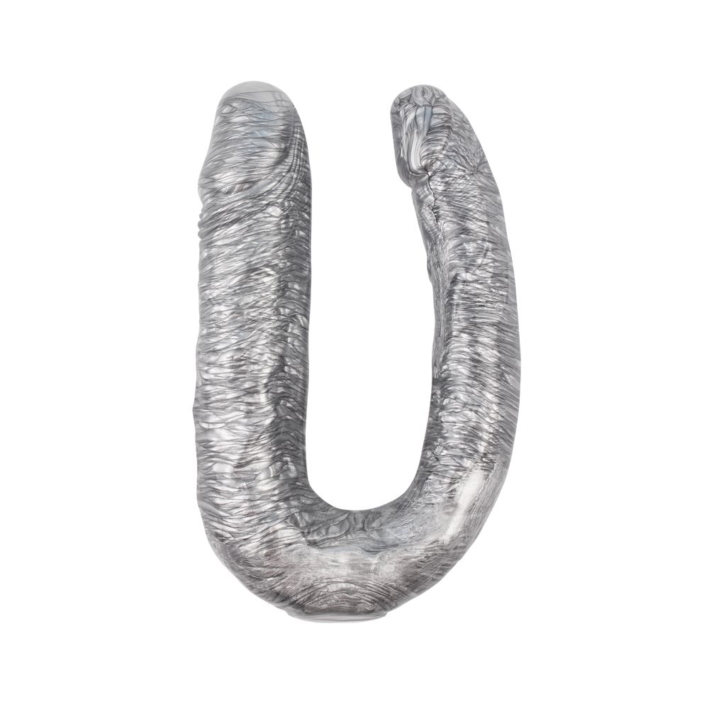Серебристый двусторонний фаллоимитатор Dixie Normous. Реалистичный дизайн. Минимальный диаметр - 2,5 см.