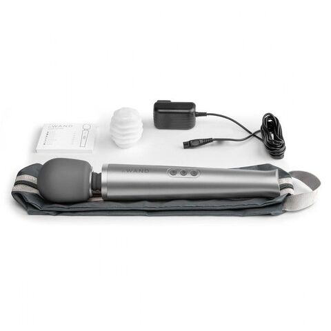 Серебристый массажёр-жезл le Wand с 20 режимами вибрации