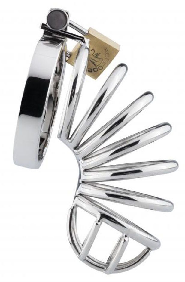 Мужской пояс верности изготовлен из нержавеющей стали. Имеет кольцо, которое застегивается за мошонкой. В комплект входит замочек. Пояс плотно прилегает к мошонке, что не позволит снять пояс без открытия замочка. Специальная изогнутая форма не позволит получить эрекцию. Диаметр кольца для мошонки - 4,8 см.