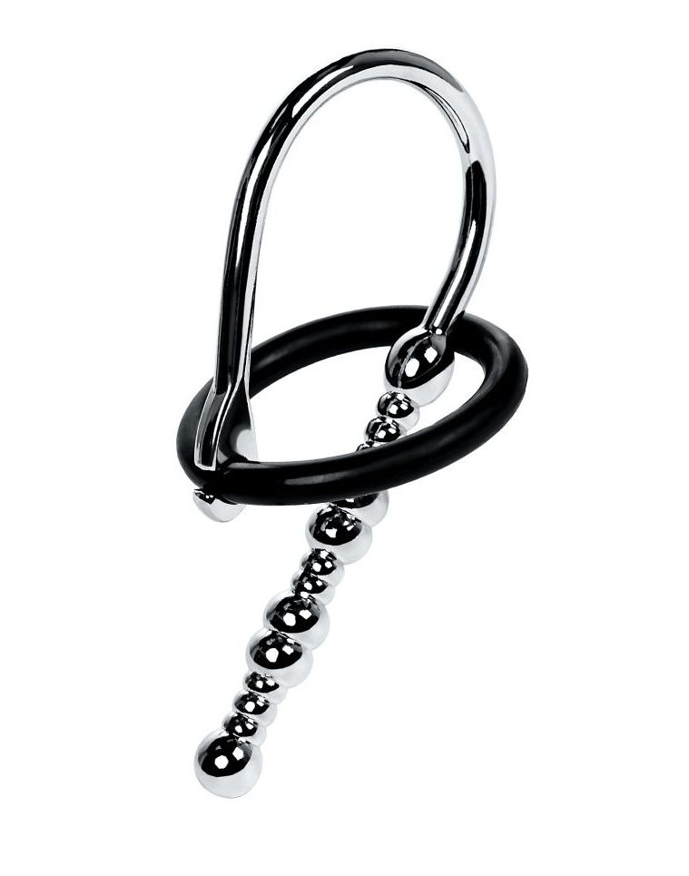 Уретральный плаг в форме бусин различного диаметра для стимуляции уретры. Мягкое кольцо для фиксации на головке. В комплект входят 2 кольца. Рабочая длина - 5 см.