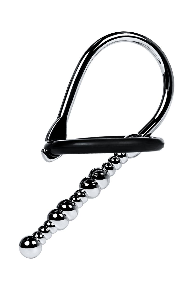 Серебристый уретральный плаг-бусины TOYFA Metal с мягким фиксириющим кольцом