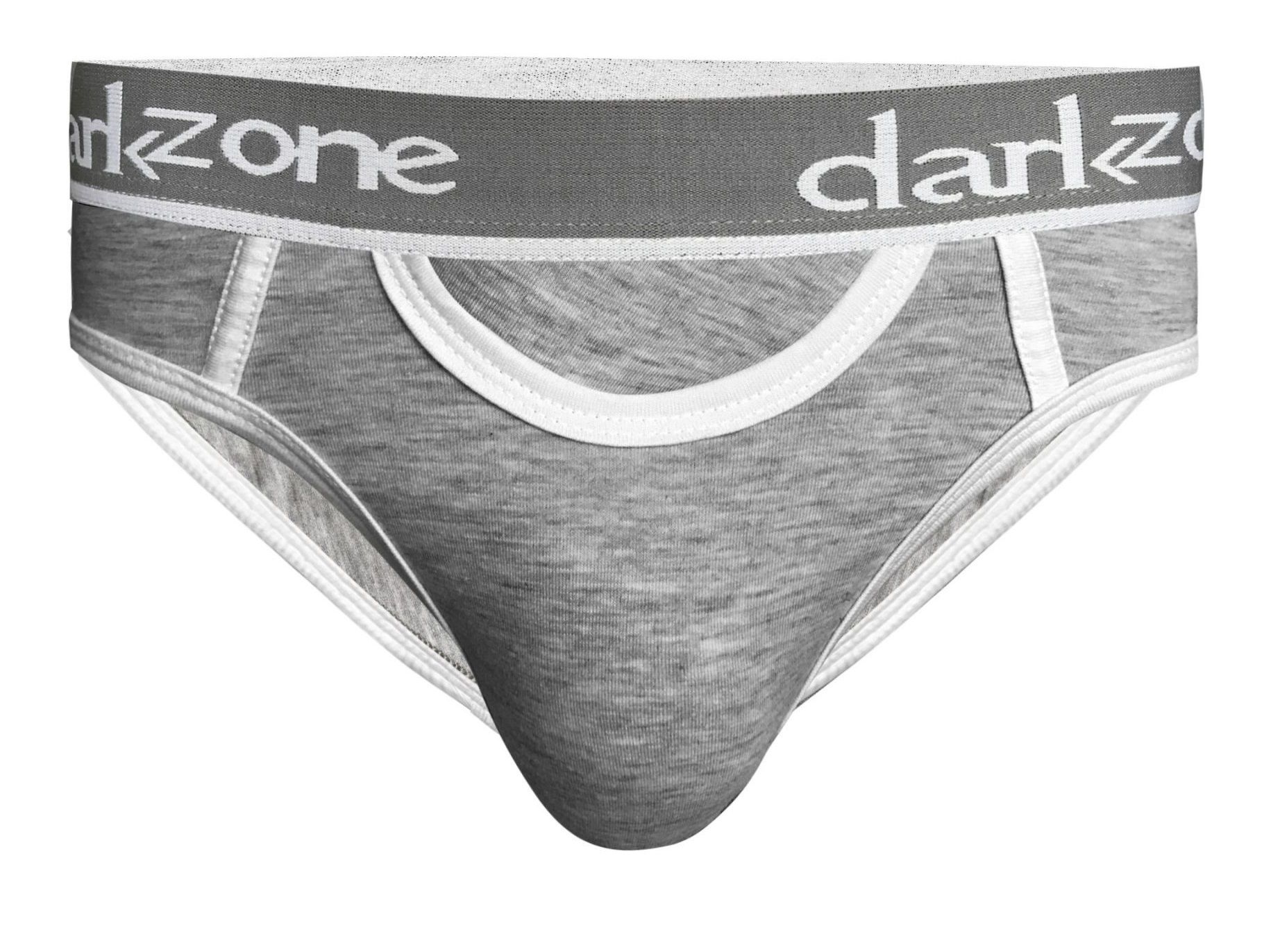 Серые мужские трусы-брифы с вырезом.