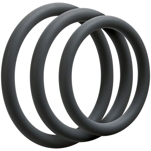 Серые тонкие эрекционные кольца, 3 штуки разного диаметра в наборе. Диаметр колец - 4, 4,5 и 5 см.