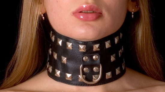 Широкий чёрный проклёпанный ошейник из кожи.