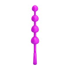 Силиконовая цепочка состоит из бусин разных размеров, что позволяет безболезненно проникать в область ануса. В ее основании находится удобное колечко, с помощью которого можно контролировать глубину проникновения игрушки. Минимальный диаметр звена - 1,7 см.