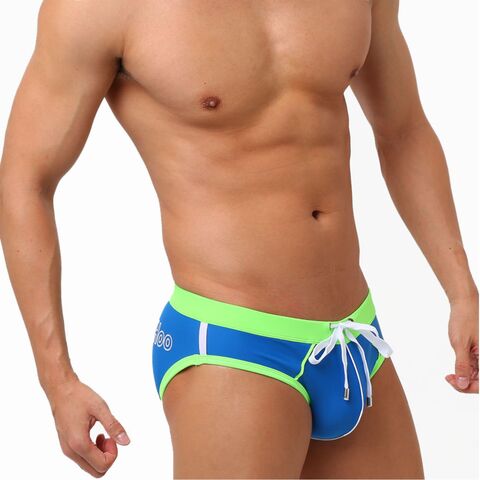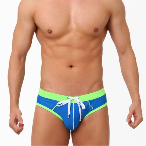 Сине-зеленые мужские плавки с поясом на шнурке.