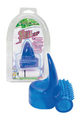 Синее эрекционное колечко с вибропулей и клиторальной щёточкой.