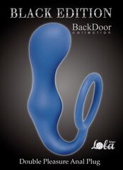 Синее эрекционное кольцо с анальной пробкой Double Pleasure Anal Plug