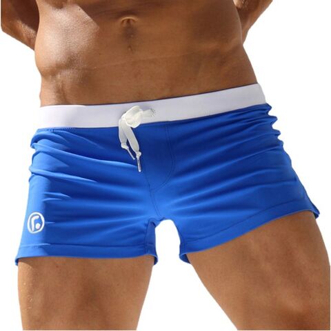 Синие мужские плавки-хипсы с белым поясом. Быстросохнущая ткань.