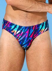 Мужские пляжные плавки со средней линией талии и средней шириной бочка. Пояс на узкой резинке.