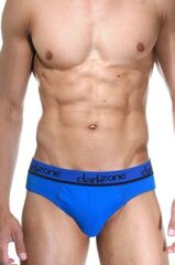 Синие мужские трусы-слипы с контрастными надписями на резинке.