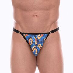 Синие мужские трусы-тонги с разноцветным принтом