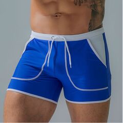 Синие плавки-боксеры с контрастной отделкой.