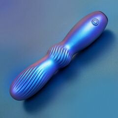 Синий фигурный вибромассажер со спиралевидным рельефом. 10 режимов вибрации. Перезаряжаемый.