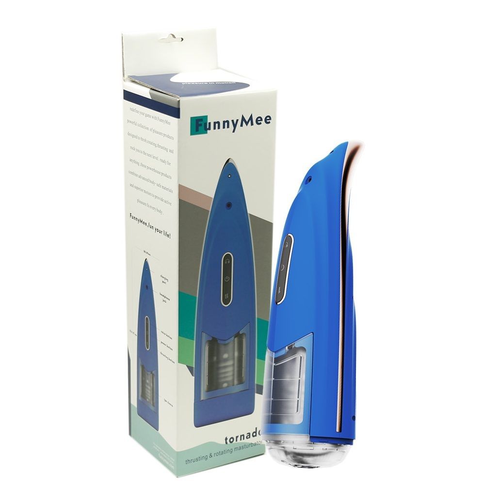 Синий мастурбатор с ротацией и аудиосопровождением