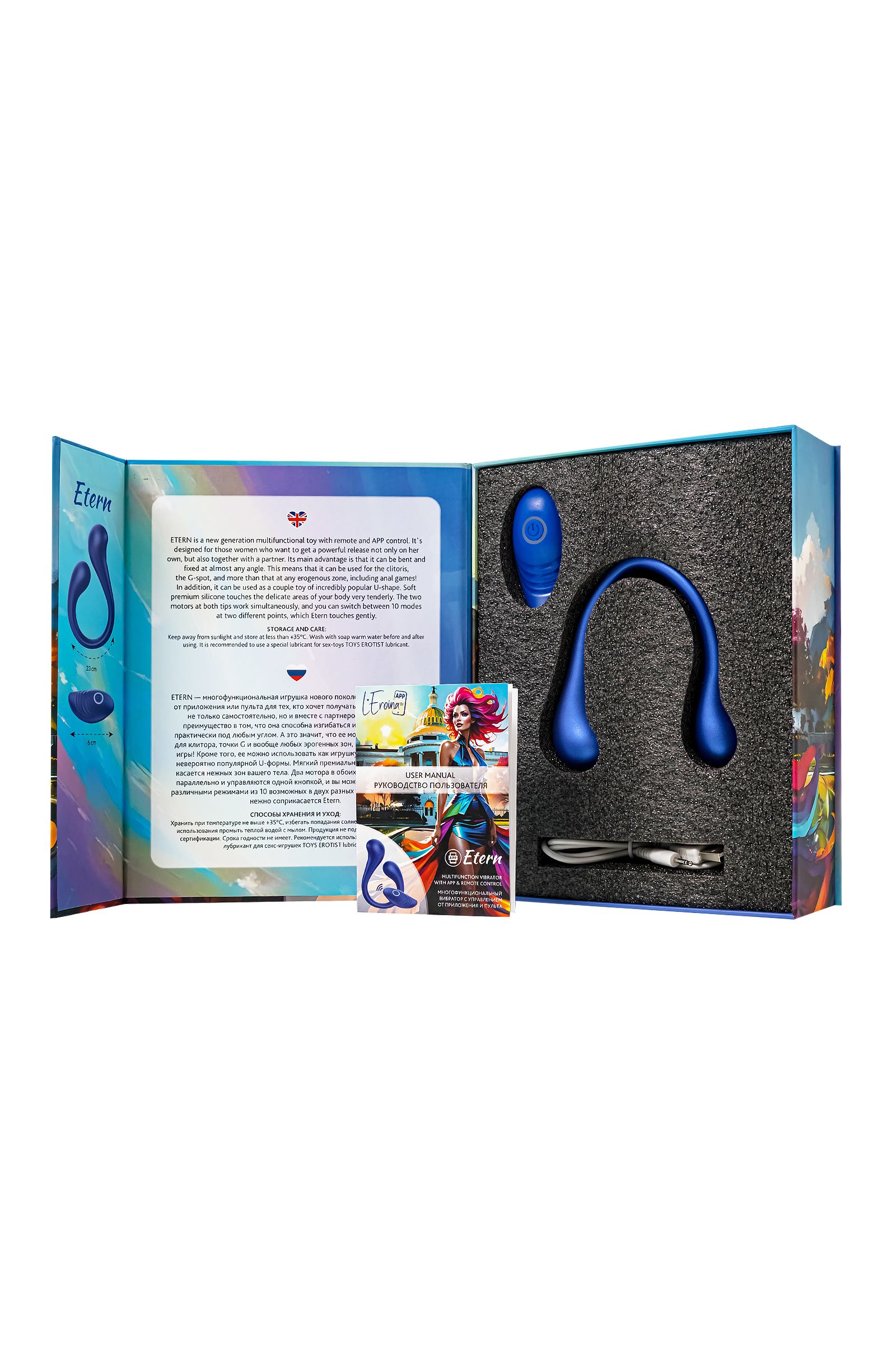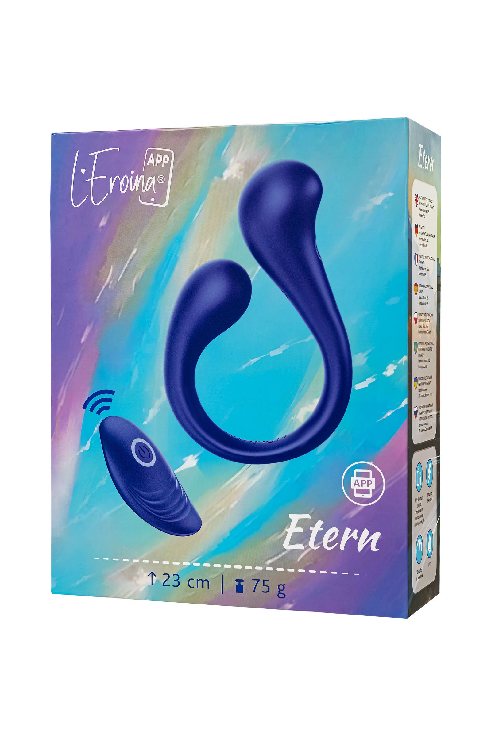 Etern водонепроницаем, так что он может сопровождать тебя и в ванной, и в душе, обеспечивая удовольствие в любой обстановке. А с его ярким синим металликом ты не только почувствуешь себя уверенно, но и будешь наслаждаться стильным аксессуаром в твоей коллекции игрушек.