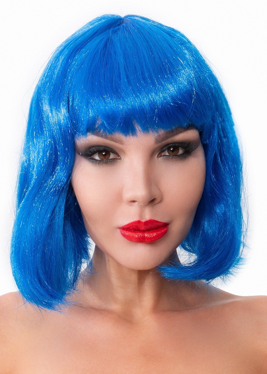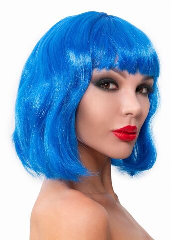Синий парик-каре с челкой