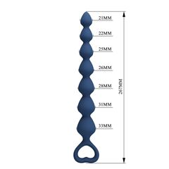 Анальная цепочка увеличенного размера создана для более интенсивных ощущений. Изготовлена из премиального силикона, имеет длину 26,7 см и полностью водонепроницаема. Постепенно увеличивающийся диаметр обеспечивает выраженное растяжение и максимальное удовольствие, а материал безопасен для тела и прост в уходе. Идеальный выбор для тех, кто ищет более глубокий и насыщенный опыт. Минимальный диаметр - 2,1см.