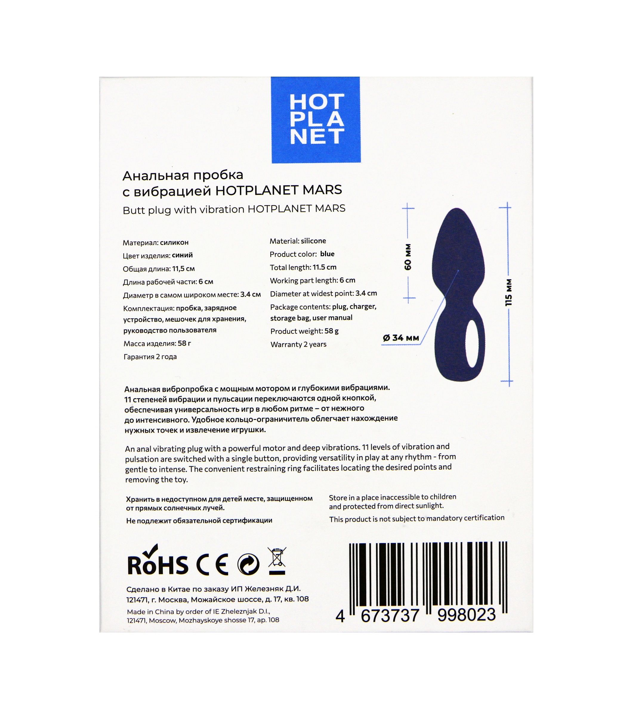 Hot Planet Mars – небольшая анальная пробка с простым управлением и стильным дизайном. У пробки мощный, но при этом достаточно тихий мотор. Ограничитель Mars сделан в виде кольца: с ним очень удобно вводить и извлекать пробку.