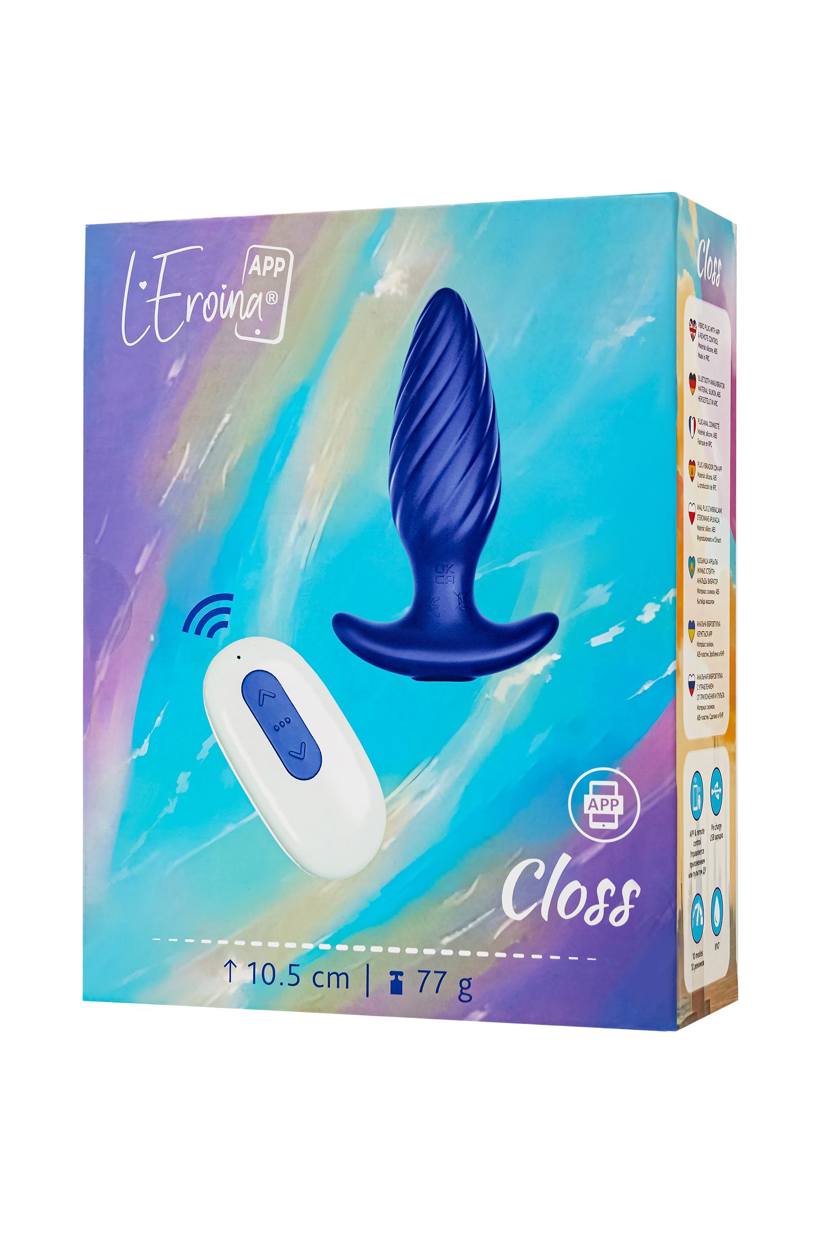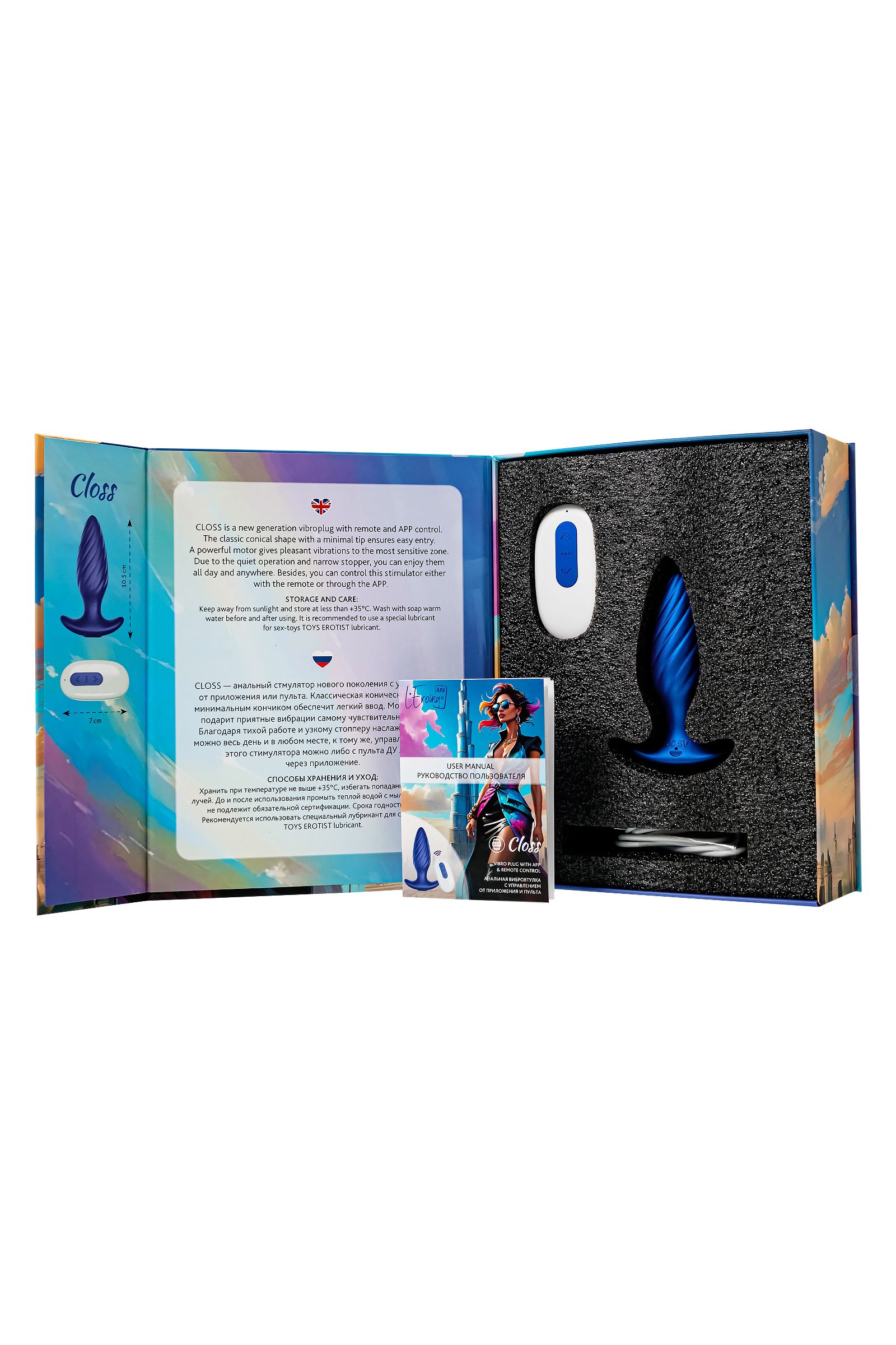 Closs — это анальная вибровтулка нового поколения, созданная для тех, кто хочет добавить немного остроты и элегантности в свои интимные моменты. Благодаря своей классической конической форме с узким, аккуратным кончиком, эта игрушка легко и комфортно вводится, гарантируя мягкое и приятное погружение. Но настоящая магия начинается, когда ты включаешь ее вибрации — мощный мотор способен пробудить самые чувствительные участки твоего тела, даря волны удовольствия в течение дня, где бы ты ни находилась. Тихая работа Closs позволяет наслаждаться ею в самых неожиданных местах, а удобный узкий стоппер гарантирует безопасность и комфорт, независимо от продолжительности использования. Управляй ее вибрациями самостоятельно или передай управление партнеру — с пульта или через приложение, ты можешь играть с различными настройками, выбирая между 10 режимами вибрации и находя свой идеальный ритм. Closs предлагает вместе расширить границы возможностей с приложением. Работа приложения осуществляется в тестовом режиме и может быть нестабильна. Перспективная функция управления Bluetooth через смартфон дает игрушке возможность вибрировать в такт музыке, реагировать на движения смартфона и рисунки на экране, и даже обеспечить присутствие партнера независимо от расстояния. Этот стильный аксессуар выполнен в ярком, сверкающем синем металлике, что делает его не только функциональным, но и визуально привлекательным. Благодаря водонепроницаемости уровня IPX7, Closs готов сопровождать тебя в ванной или душе, а магнитная зарядка сделает процесс подзарядки быстрым и удобным. Рабочая длина - 7,5 см.