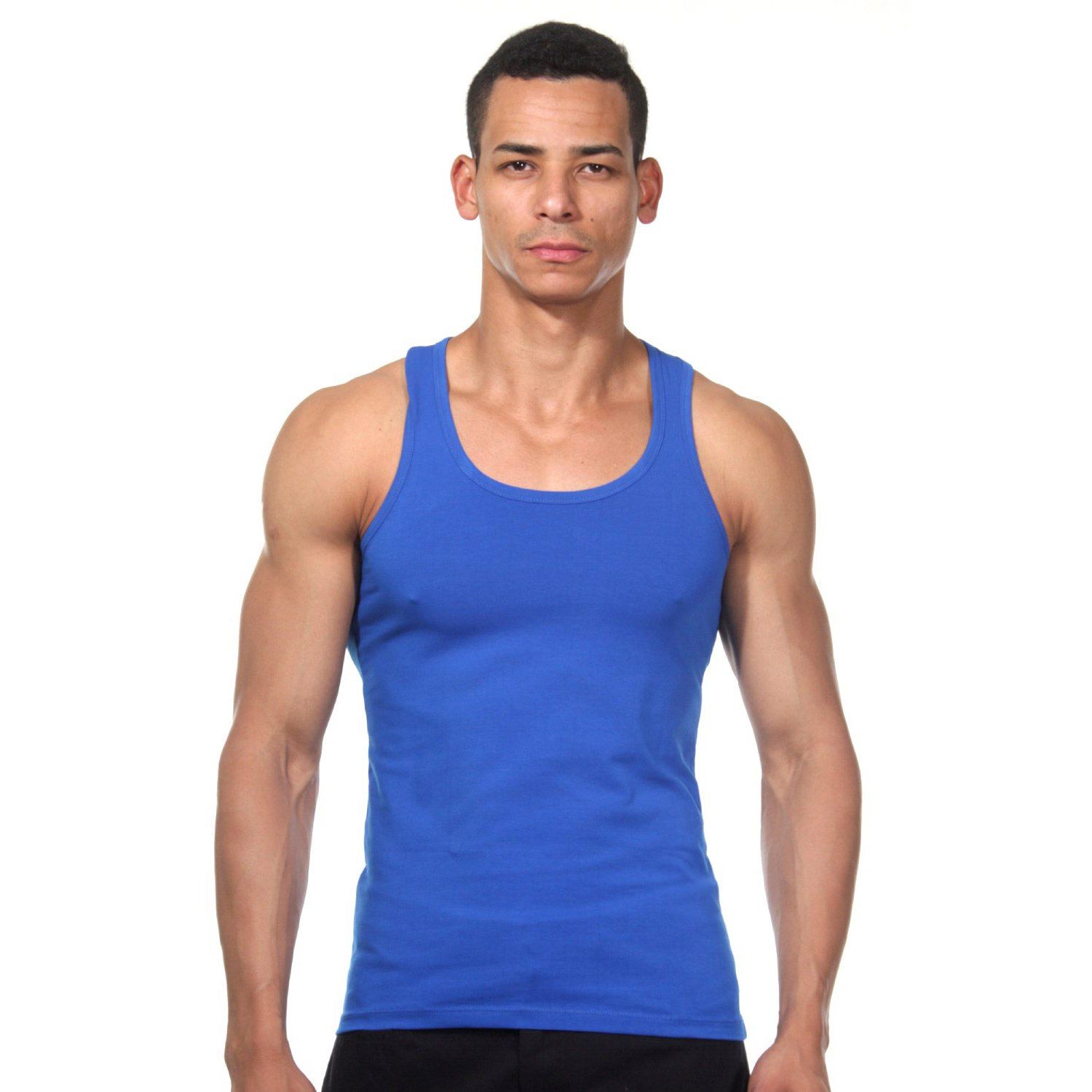 Синяя хлопковая майка-борцовка.