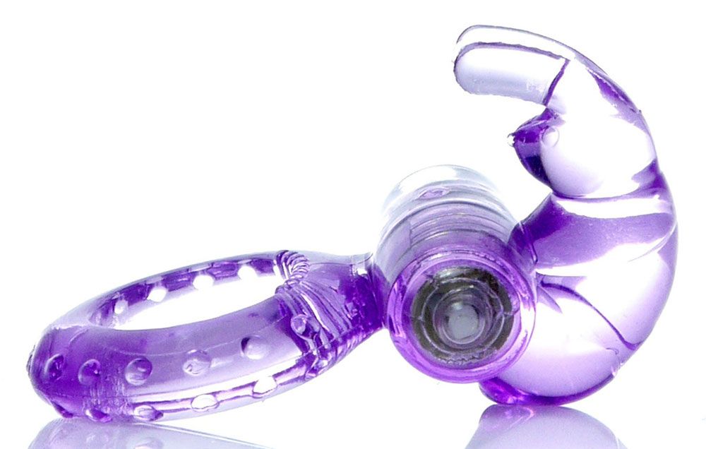 Сиреневое эрекционное виброкольцо с клиторальным зайчиком