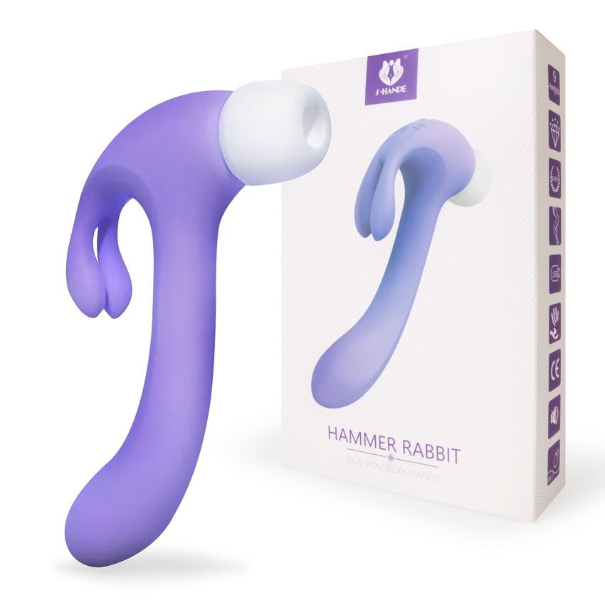 Сиреневый двусторонний вибромассажер Hammer Rabbit - 18,8 см.