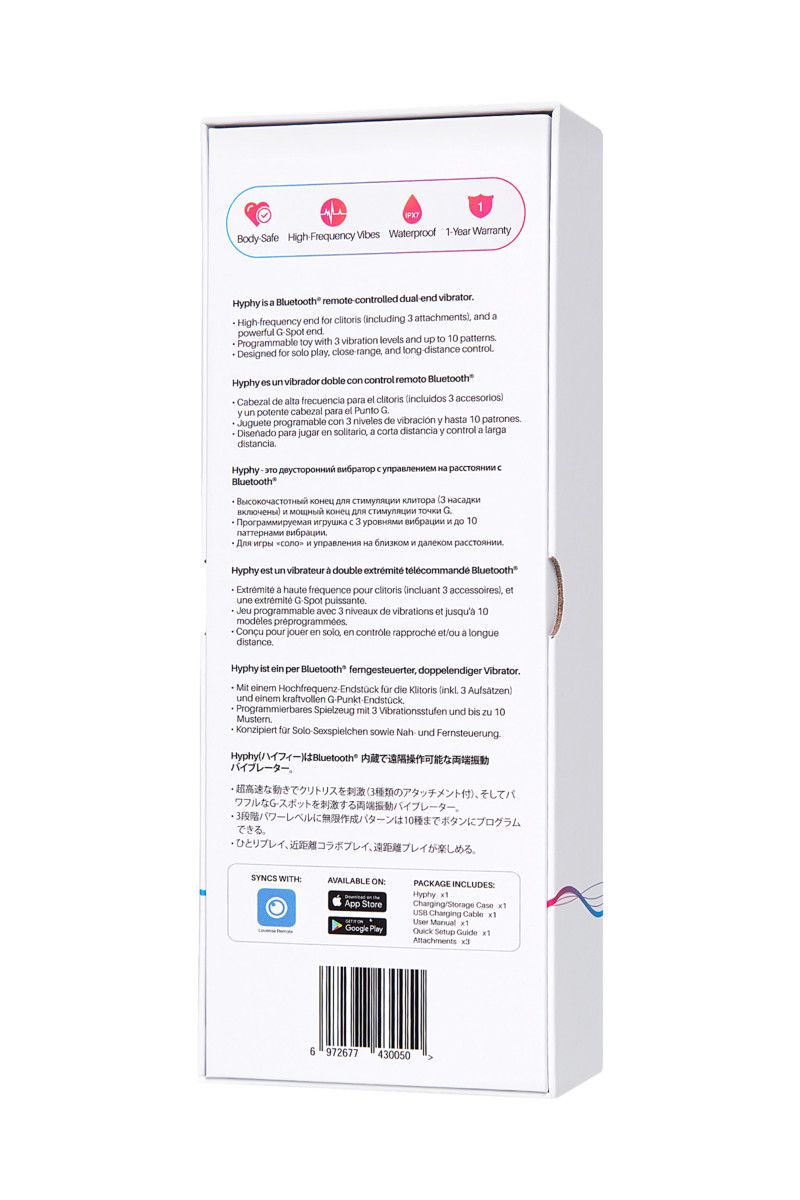 Lovense Hyphy имеет два независимых мотора. Погружная часть оснащена глубокой проникающей вибрацией. Мотор со стороны наконечника позволяет использовать высокочастотную вибрацию для принципиально новых ощущений. В комплекте с Lovense Hyphy поставляются три разные силиконовые насадки для тонкого кончика, которые точечно воздействуют на соски или клитор, вызывая мгновенный фантастический оргазм, или имитируют нежные оральные ласки.