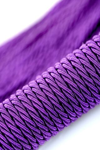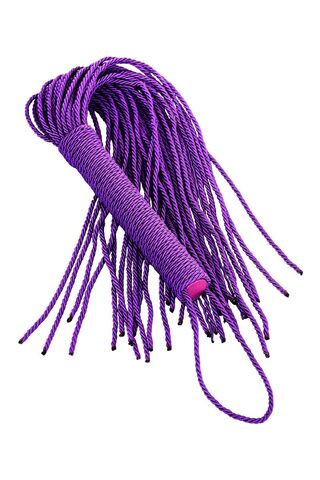 Сиреневый веревочный флоггер с плетеной ручкой мягко разогревает кожу и готовит к более серьезным воздействиям. Длина ручки - 15,5 см.