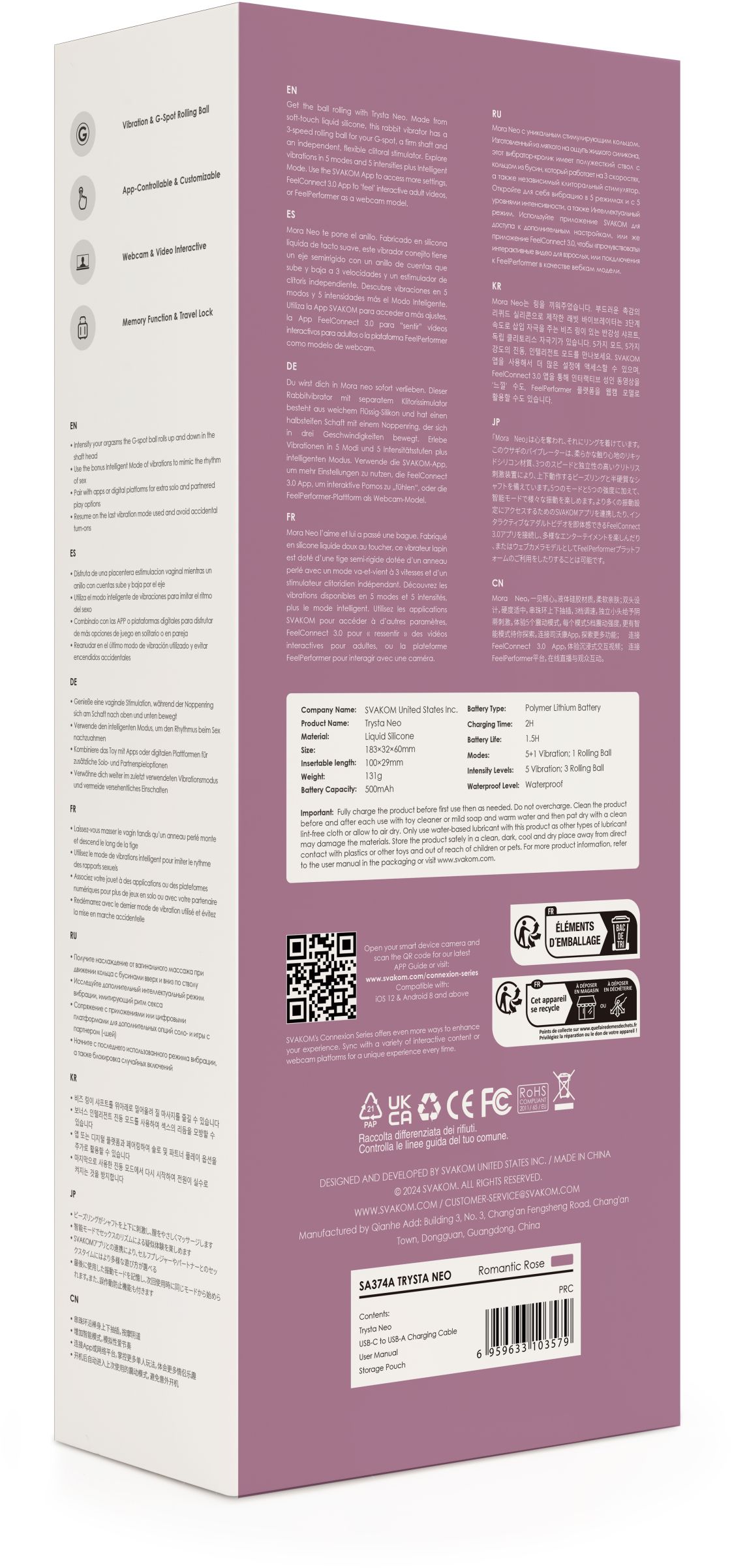 Вы также можете использовать Trysta Neo с приложением SVAKOM на смартфоне с поддержкой Bluetooth, чтобы наслаждаться настройкой, управлением на большом расстоянии и игрой с партнером.