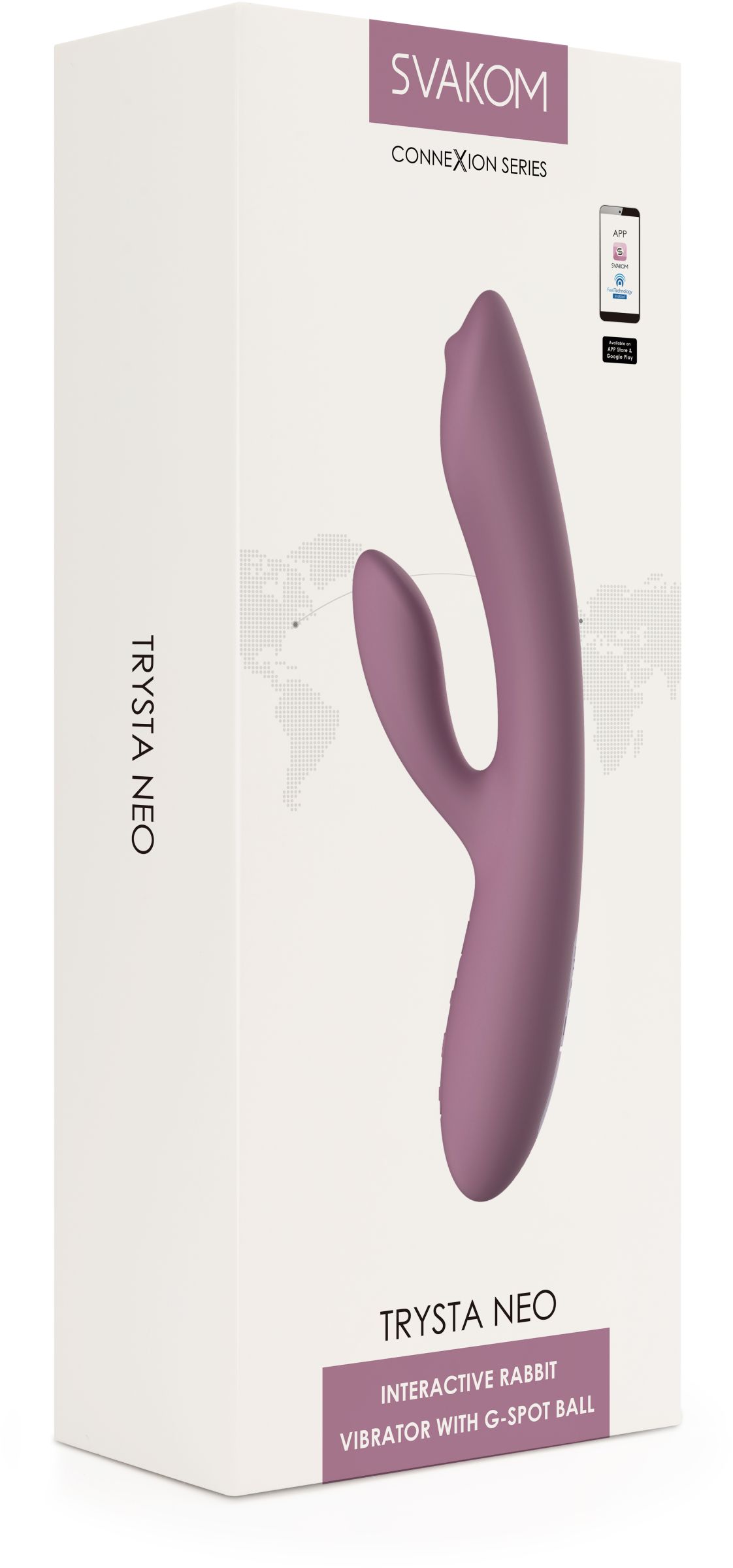 Trysta Neo усиливает удовольствие в зоне G с помощью более плотного и ощутимого шарика, который катается вверх и вниз по головке полужесткого ствола. Также имеется независимый стимулятор клитора для развития смешанных оргазмов с соблазнительными вибрациями.