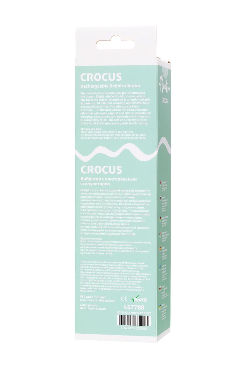 Сиреневый вибратор с клиторальной стимуляцией Crocus - 17,5 см.