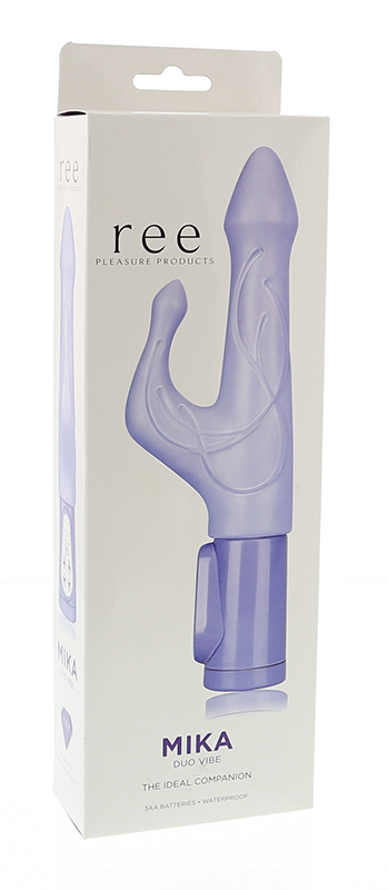 Сиреневый вибромассажёр с клиторальным отростком Mika.
