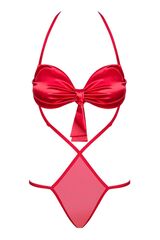 Пикантное боди Giftella выполнено из эластичной сеточки, атласной ткани и мягких стреп-лент. Лиф мягкий без косточек, бретель фиксируется за шеей. Низ боди выполнен в виде стринг с декоративным бантиком сзади.
