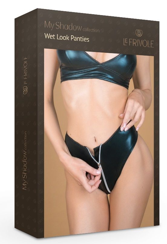 Лаконичные трусики с акцентом на сплошную функциональную молнию, сделают ваш образ вызывающим. А защитная планка под молнией сделает ношение этих трусиков комфортным. Модный фасон на талии удачно подчеркнёт и визуально уменьшит вашу талию, а глубокие вырезы бёдер, визуально удлинят ноги, что окончательно не оставит вашего партнёра равнодушным. Трусики изготовлены из высокоэластичного материала – мокрая кожа.