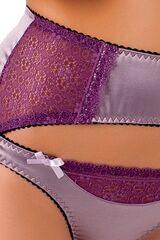 Широкий поясок и трусики-стринг, также отделанные нежным полупрозрачным ажуром, усилят притягательность бёдер и треугольника внизу живота. В комплекте: бюстгальтер, пояс, трусики-стринг.