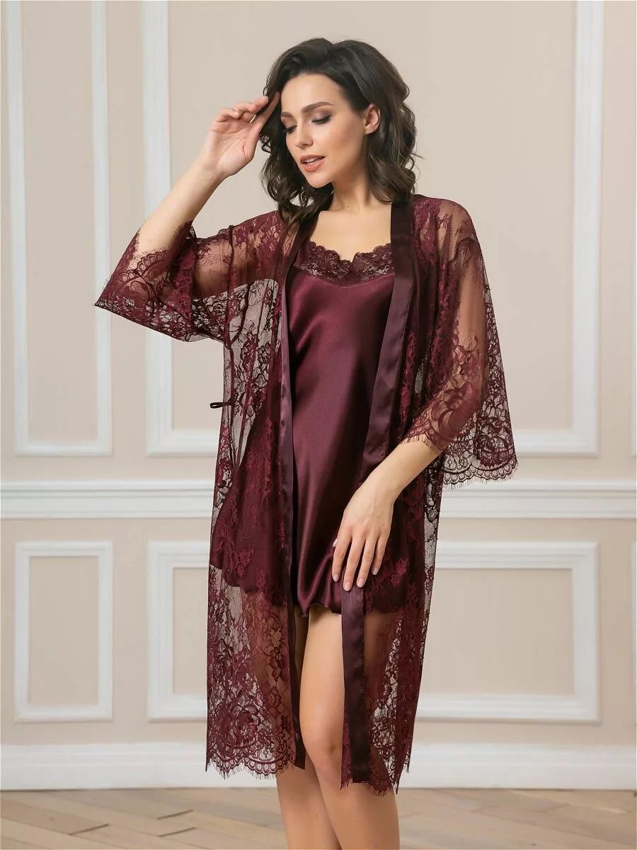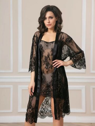 Соблазнительный кружевной пеньюар с поясом