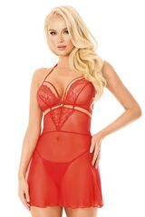 Сексуальный комплект Melania от польского бренда SoftLine отлично подходит для украшения любой женской фигуры. Стильная ночная сорочка в комплекте с трусиками-стрингами сделана из прозрачной сетки. Бюст декорирован красивым кружевом и тонкими полосками ткани. Все вместе это подчеркивает соблазнительную форму груди. Удачный крой комбинации обеспечивает акцент на талии, делая ее визуально тоньше. Пикантный вырез под грудью также делает силуэт стройнее. Застегивается комбинация на спинке застежкой-крючком и завязками на шее, благодаря чему надевать и снимать сорочку очень легко. В комплекте: сорочка, трусики-стринги.