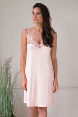 Красивая сорочка длиной чуть ниже колен выполнена из легкой, мягкой натуральной вискозы высокого качества, приятной телу. Лиф с красивым V-образным вырезом и спинка украшены шикарным кружевом с узором в тон, которое привлекает взгляд и делает образ особенно романтичным. Сорочка на тонких, регулируемых бретелях. Нежный цвет и кружево создают прекрасный тандем для вашего женственного образа.