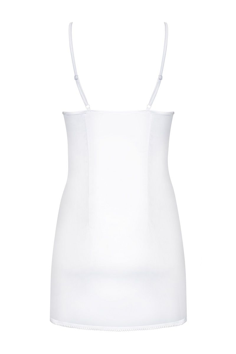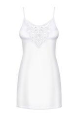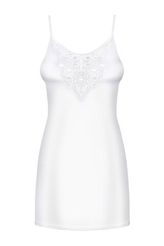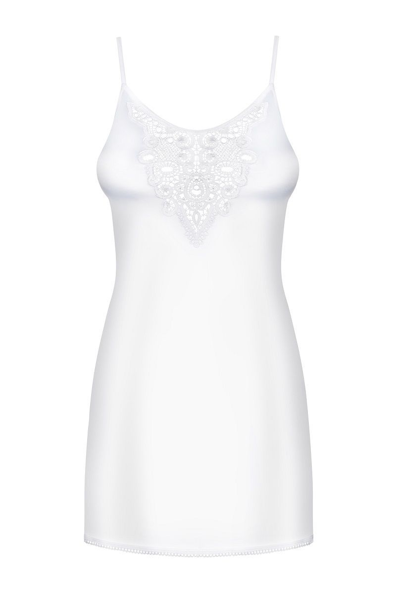 Элегантная сорочка на тонких бретелях, в зоне декольте украшена вышивкой. В комплект входят трусики. В комплекте: сорочка, трусики-стринги.