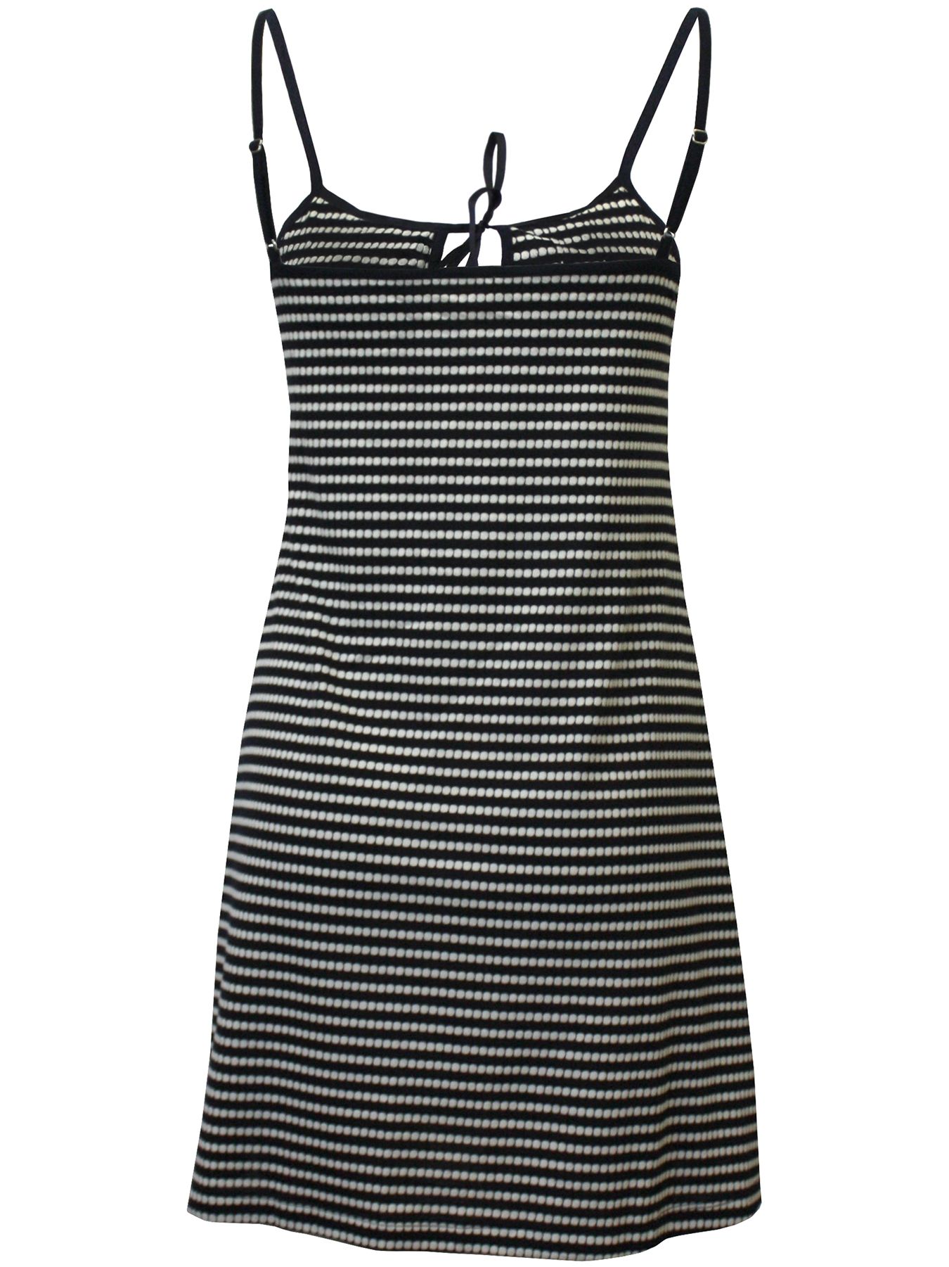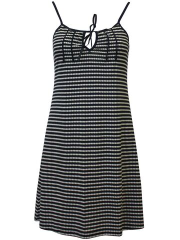 Сорочка на тонких регулируемых бретелях, из объемного трикотажного полотна, в модной полосатой гамме. Декоративные элементы-вытачки и бантик.