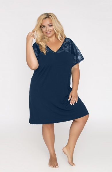 Сорочка с V-образным вырезом, полотно сорочки из эластичной микрофибры, лиф мягкий, короткие рукава, спинка и полочка из кружевного полотна. На спине перекрещиваются тонкие бретели.