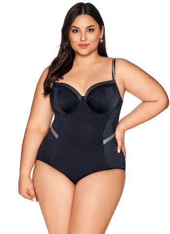 Совместный купальник для пляжного отдыха. Лиф купальника на косточках, на тонком поролоне, с внутренней стороны спереди купальник продублирован сеткой, под грудью пришита широкая резинка, на спине металлическая застёжка. Тонкие бретели регулируются по длине. Встроенная в костюм надежная конструкция бюстгальтера с полной чашкой удобно стабилизирует бюст, аппетитно подчеркивая его в области декольте, а расположенные над бедрами ленты, сверкающие серебряным люрексом, придают силуэту блеск и легкость. У бюстгальтеров/купальных лифов AVA довольно тугой пояс, который адаптируется под тело после нескольких дней носки или одной-двух стирок. Рекомендуем использовать удлинитель пояса бюстгальтера на первое время либо выбирать следующий за «своим» размер, с поясом длиннее.