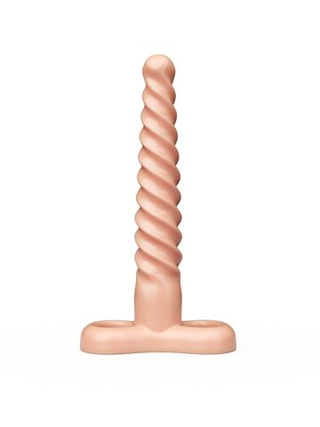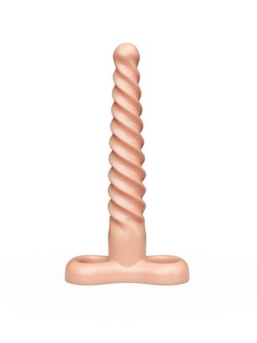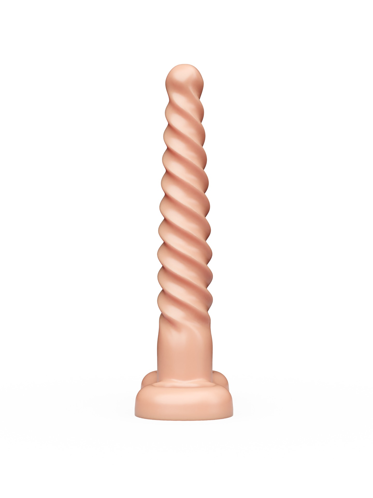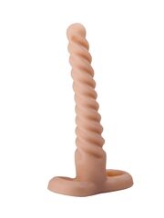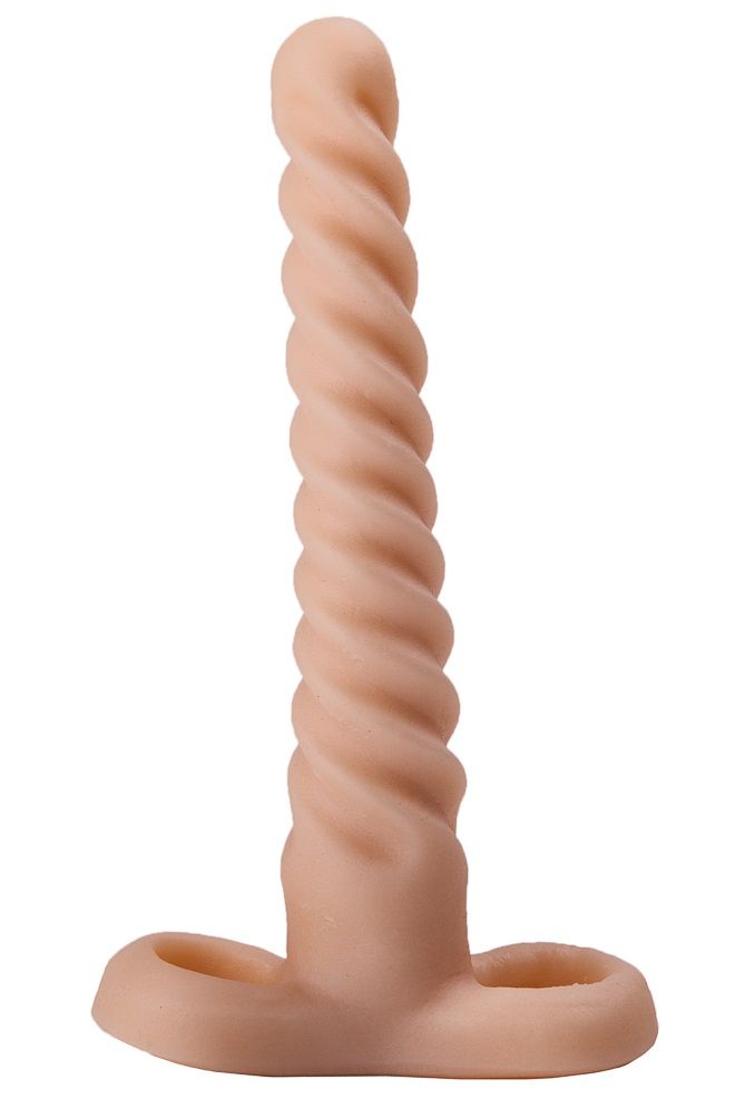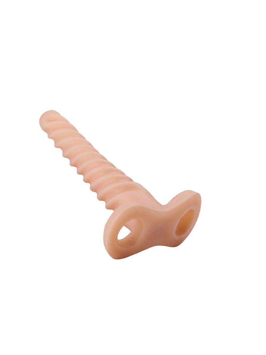 Выполненный из приятного на ощупь геля, он имеет спиралевидный рельеф от тоненького кончика и до ограничительного основания-восьмёрки.