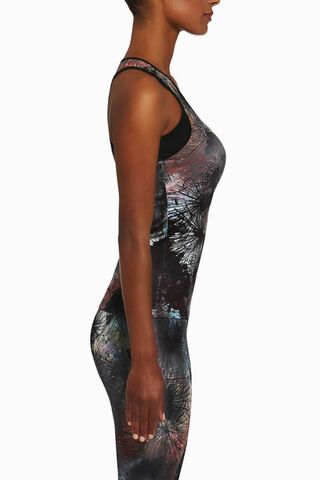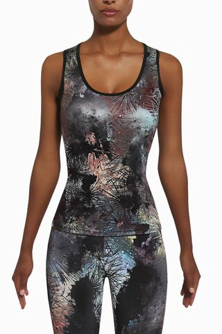 Спортивная майка для фитнеса Fusion top 50 с ярким абстрактным принтом изготовлена из полностью непрозрачного, эластичного, корректирующего фигуру материала. Благодаря применению особой химической модификации структуры волокон фирмы ARCHROMA, материал имеет улучшенные свойства пропускания воздуха и отвода влаги с тела. Плотность - 200 ден.
