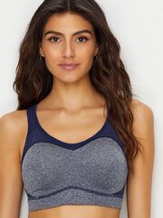 Спортивный бюстгальтер с бесшовными, мягкими, закрытыми чашками, на каркасах. Максимальная поддержка, специально для пышной груди. Выполненный по технологии Vapor с X-Temp от Champion, он высыхает быстрее при повышении температуры тела. Ребристая накладка на каркасы изнутри делает прикосновение бюстгальтера мягким и комфортным. Широкие малоэластичные бретели на подкладке становятся эластичными на спинке и регулируются. Их так же можно соединить по середине либо отстегнуть на спинке и перекрестить. Глубокий U-образный дизайн спинки, с застежкой на 3 крючка, надежно фиксирует и обеспечивает комфортную посадку.