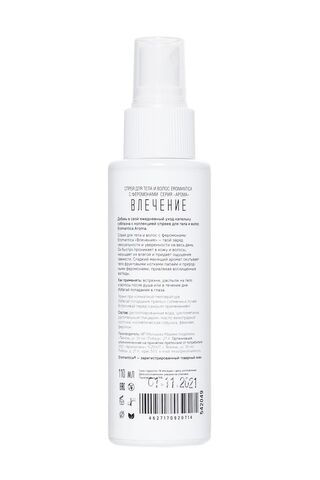 Добавь в свой ежедневный уход капельку соблазна с коллекцией спреев для тела и волос Eromantica Aroma. Спрей для тела и волос с феромонами Eromantica «Влечение» — твой заряд сексуальности и уверенности на весь день.